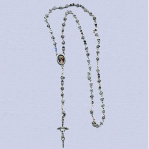 Rosario plateado en forma de rosas, plano.