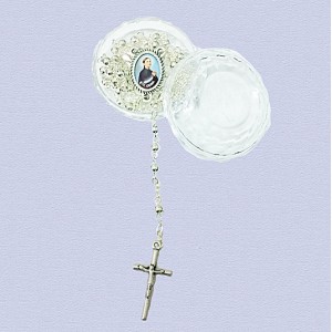 REF.8137 Rosario plateado con estuche redondo